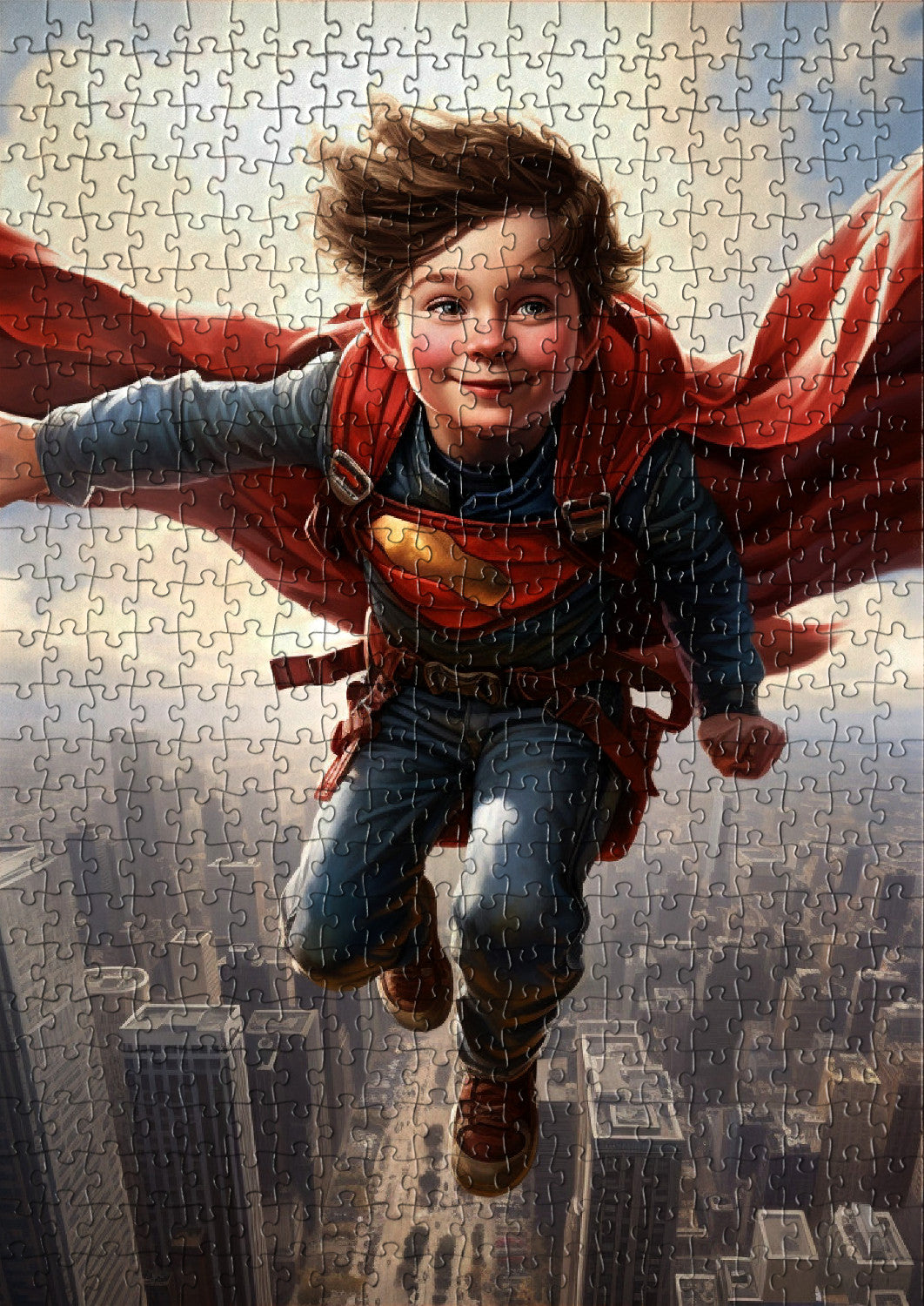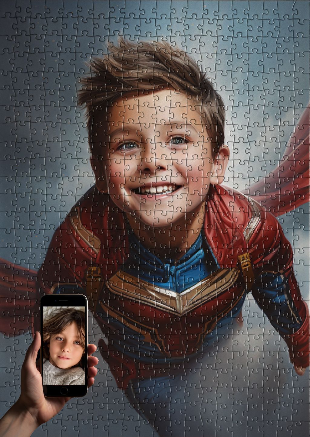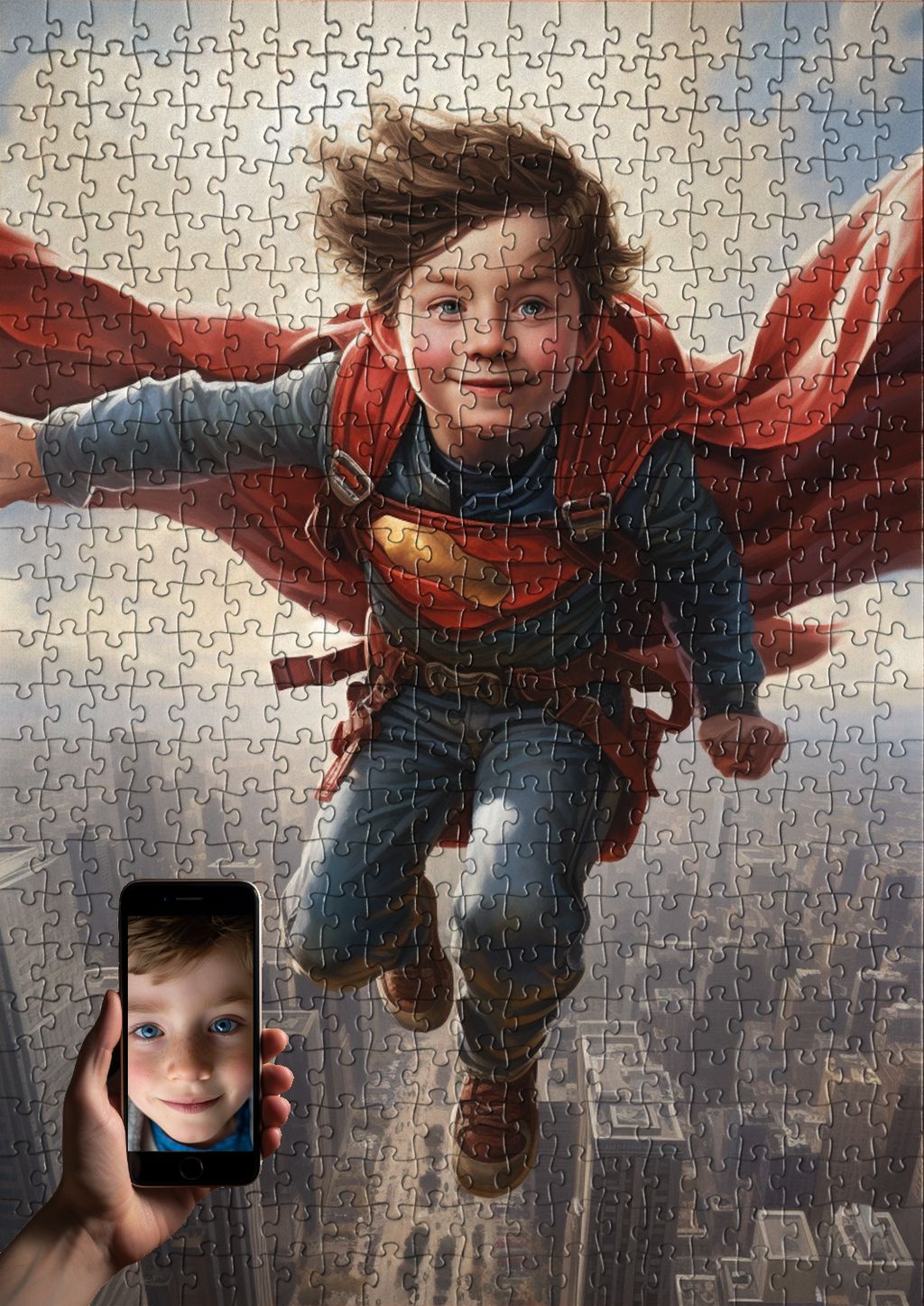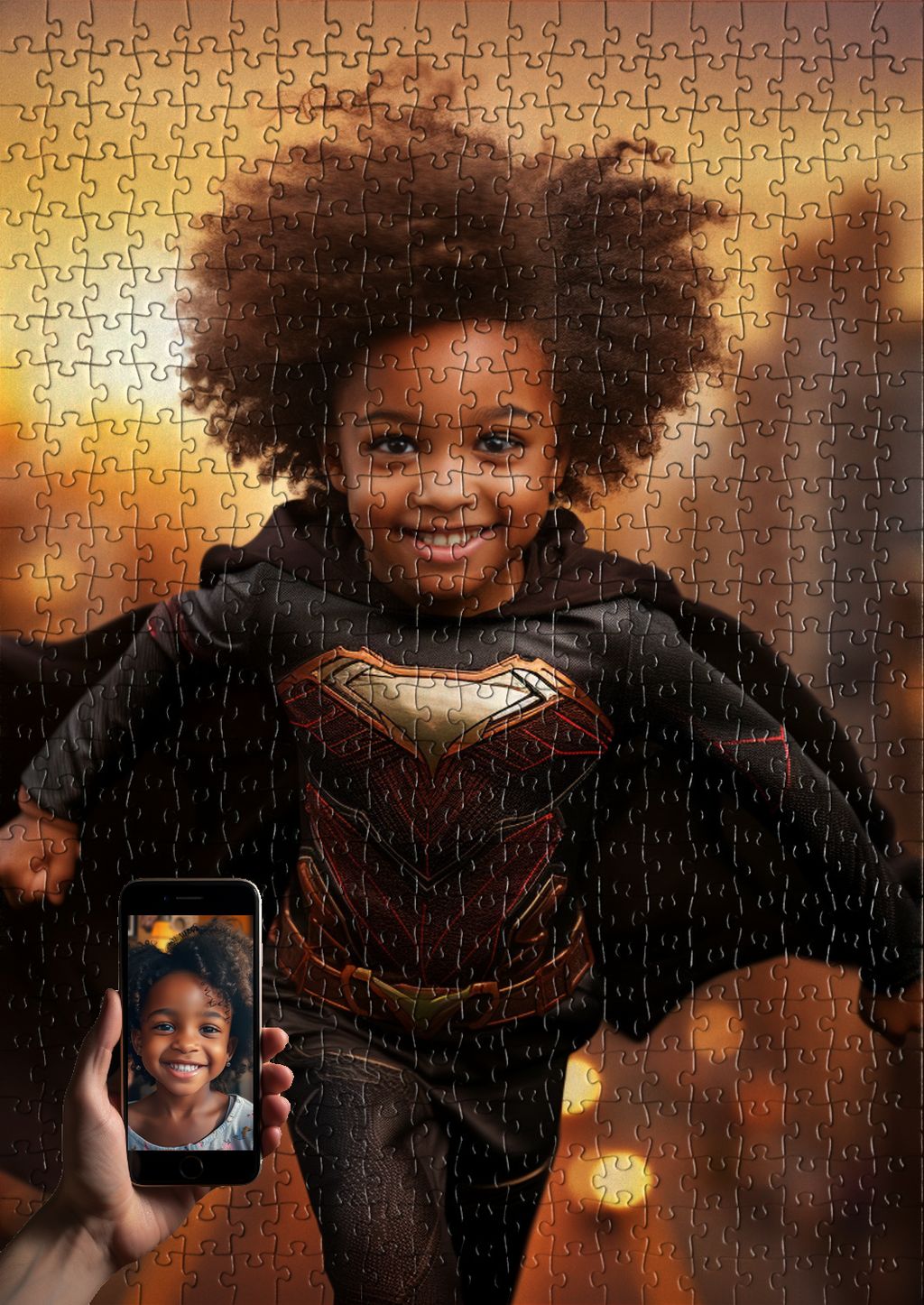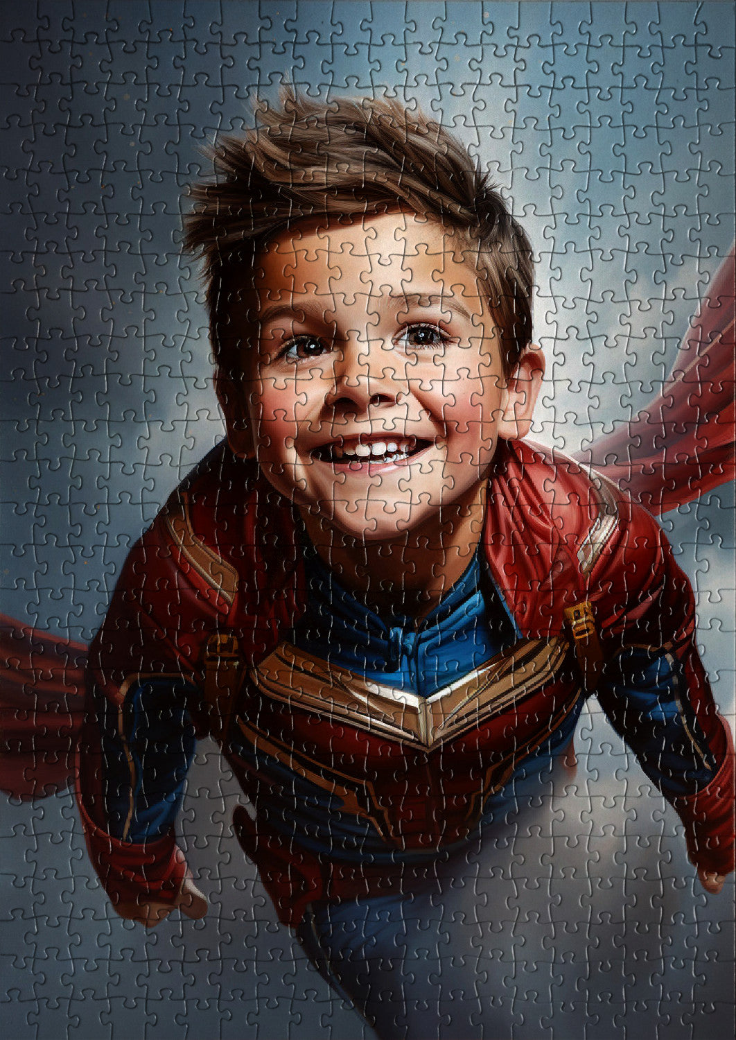 Turn your child into the hero of their own story with our personalised puzzle! Thanks to the work of our digital artists, your child’s face will be seamlessly integrated into the design of the kid superhero personalised puzzle with a heroic adventure, making their adventure feel more real than ev...