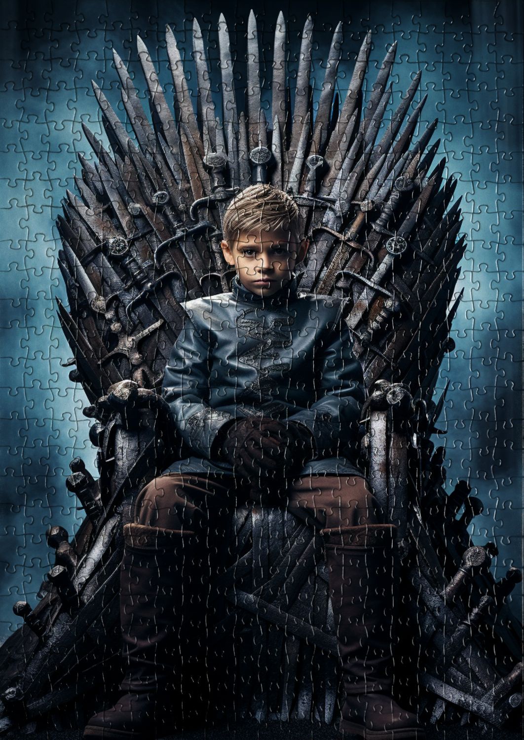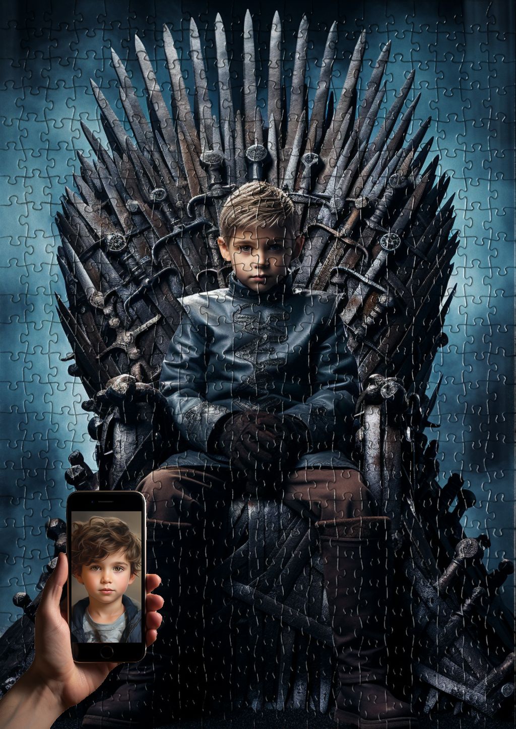 What does dragons, a dwarf and a girl with white hair have in common? You GOT it: this very uncomfortable throne! Turn your child into the hero of their own story with our personalised puzzle! Thanks to the work of our digital artists, your child’s face will be seamlessly integrated into this boy...