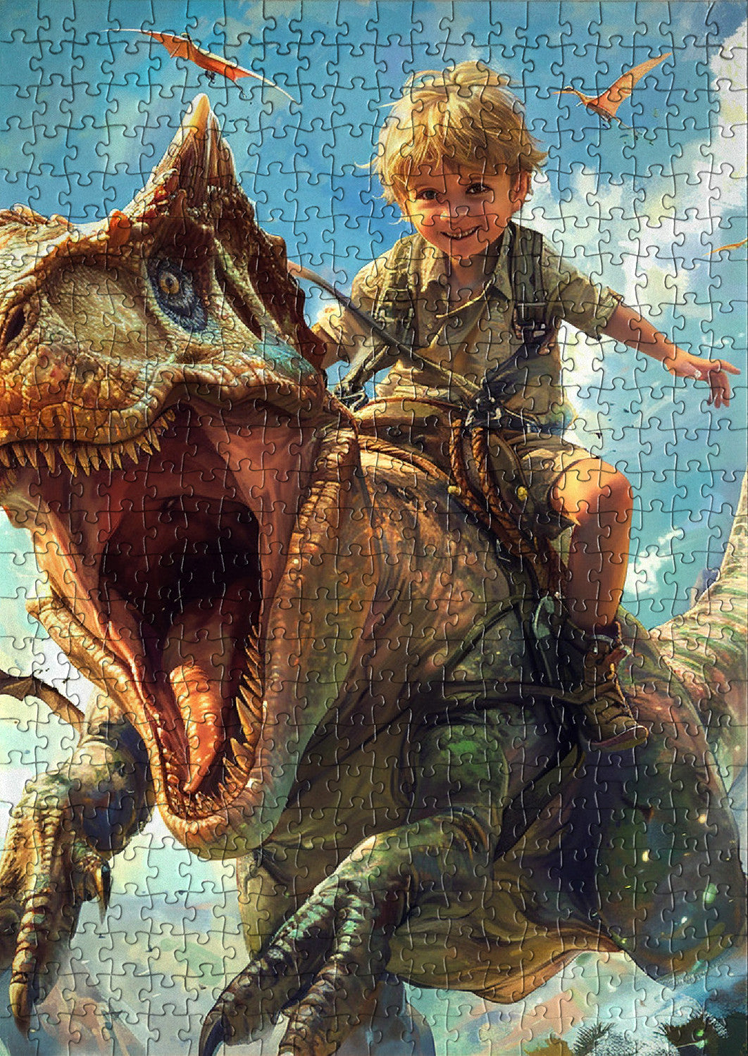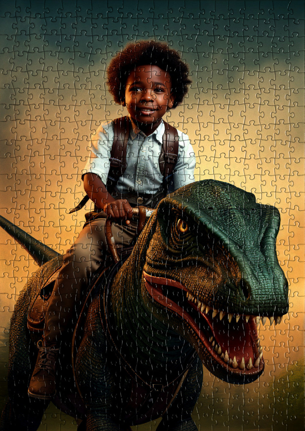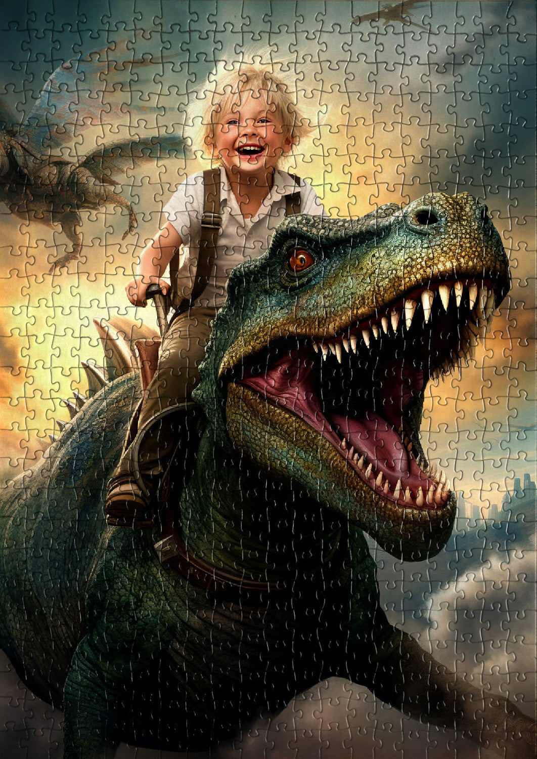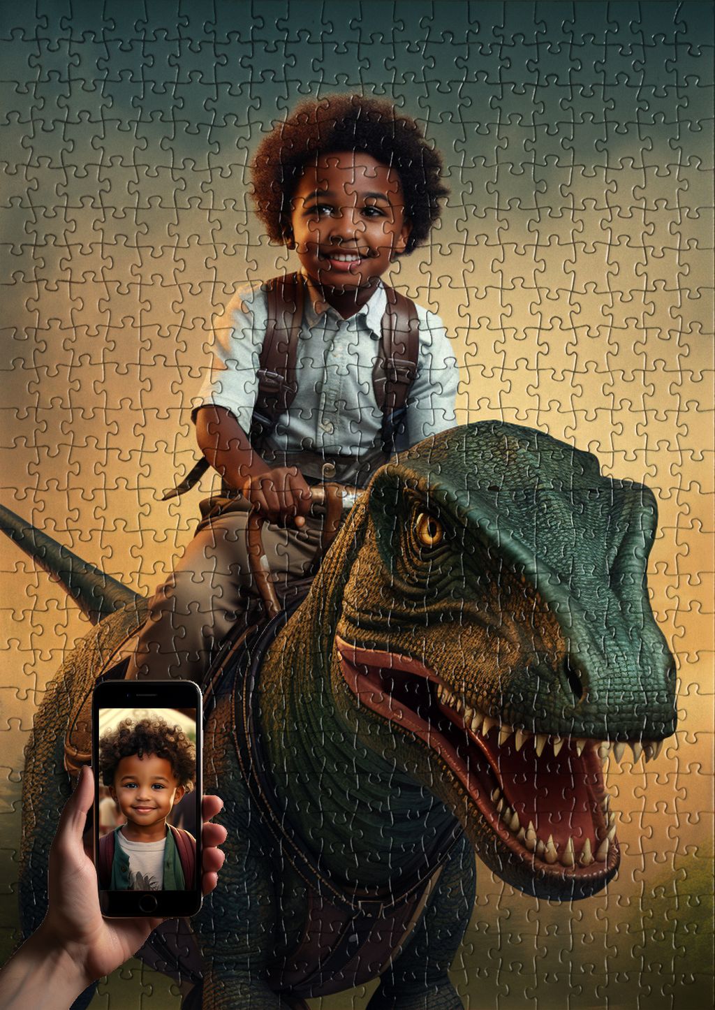 Unleash your child's imagination with the Kid Riding Dinosaur puzzle. Piece together the fun and adventure of a kid riding a dinosaur in this playful puzzle. Perfect for developing problem-solving skills while having a roaring good time! How does it work? 1️⃣ Choose this template 2️⃣ Upload a p...