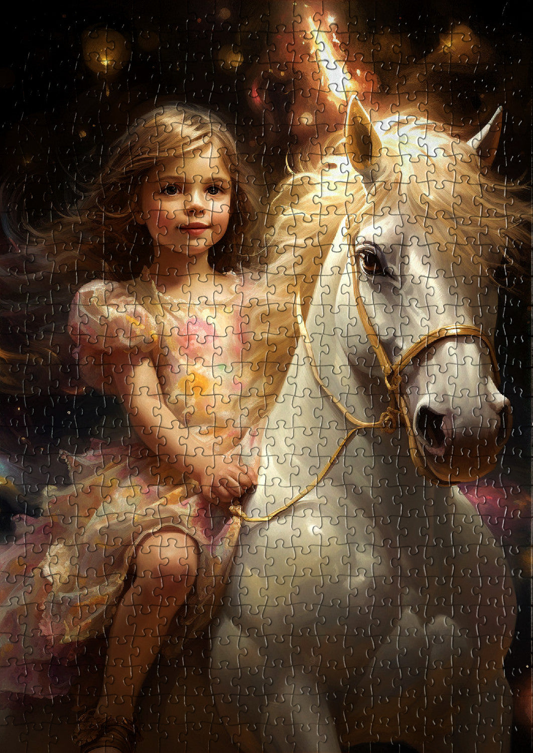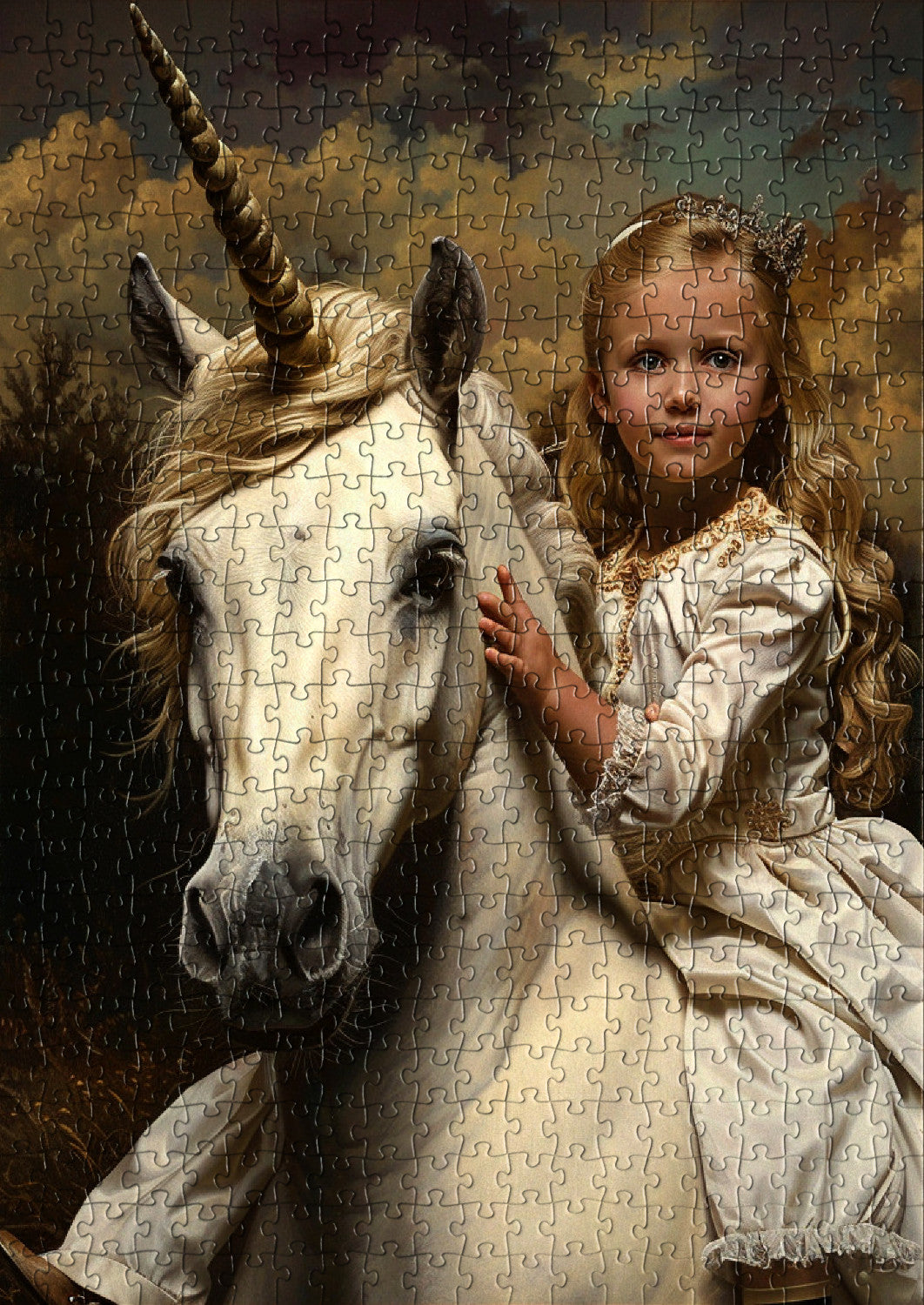 Turn your child into the hero of their own story with our personalised puzzle! Thanks to the work of our digital artists, your child’s face will be seamlessly integrated into the design of the princess riding a unicorn personalised puzzle for dreamers, making their adventure feel more real than e...