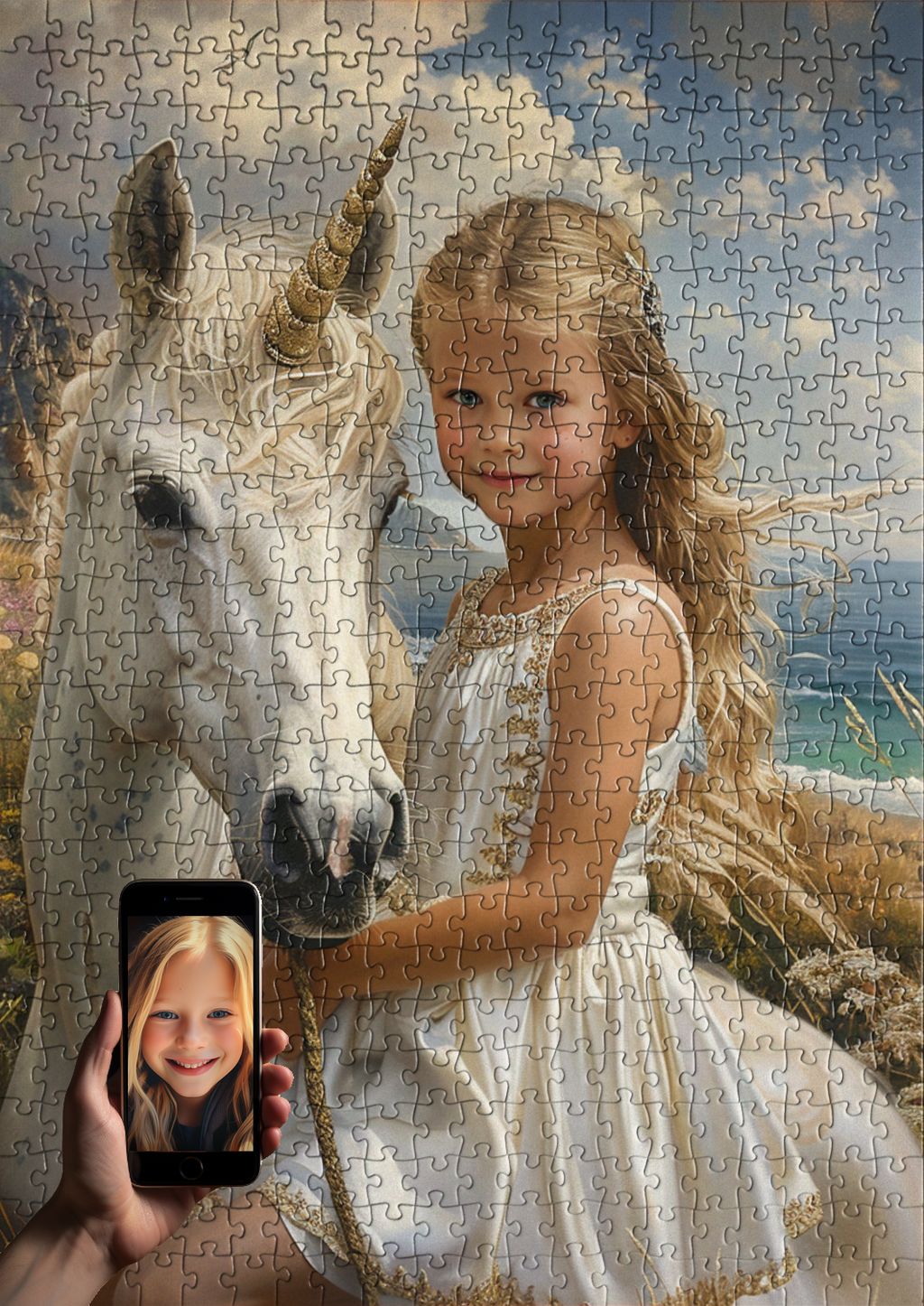 Let your child’s imagination run wild! Upload a photo of your child, and we’ll turn it into a high-quality puzzle filled with magic and fantasy. It’s not just a puzzle – it’s a magical memory that they’ll treasure forever!