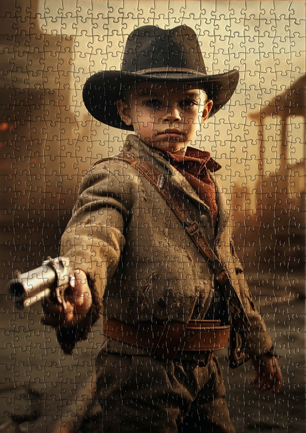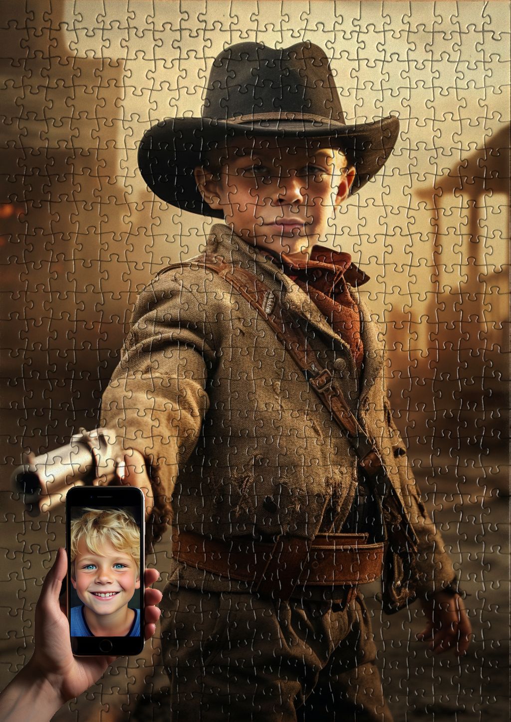 The far west cowboy... The famous gunslinger.... Is your boy always choosing the cowboy side when playing indians and cowboys? This puzzle is a must for him like a Smith & Wesson for a cowboy! Turn your child into the hero of their own story with our personalised puzzle! Thanks to the work of...