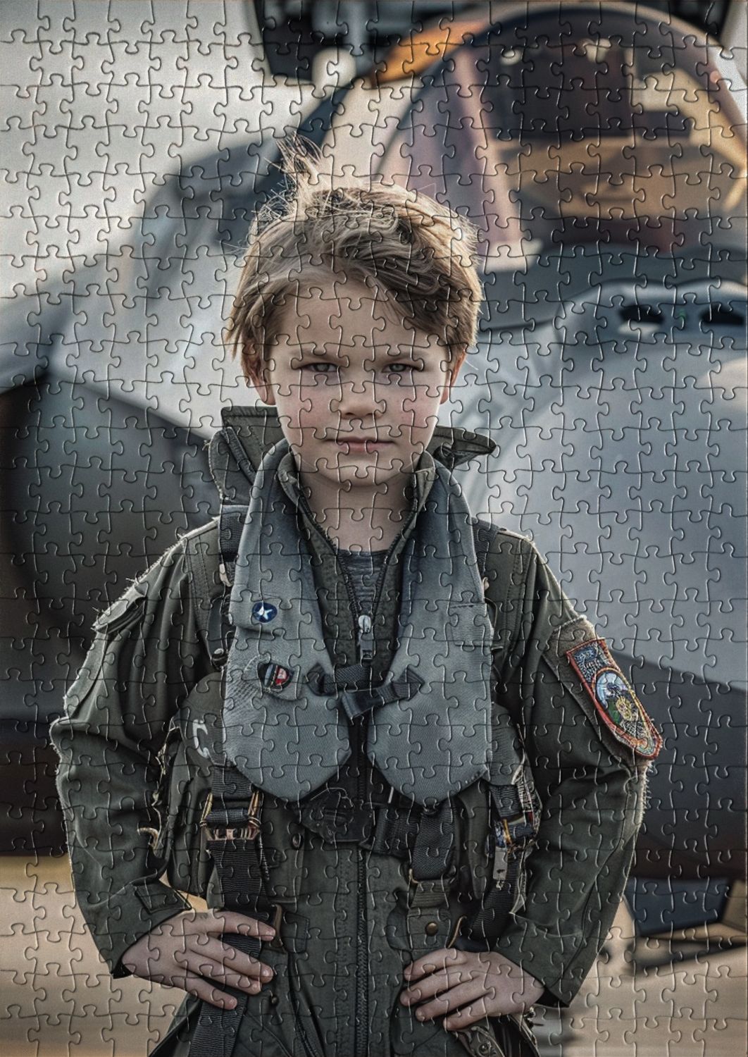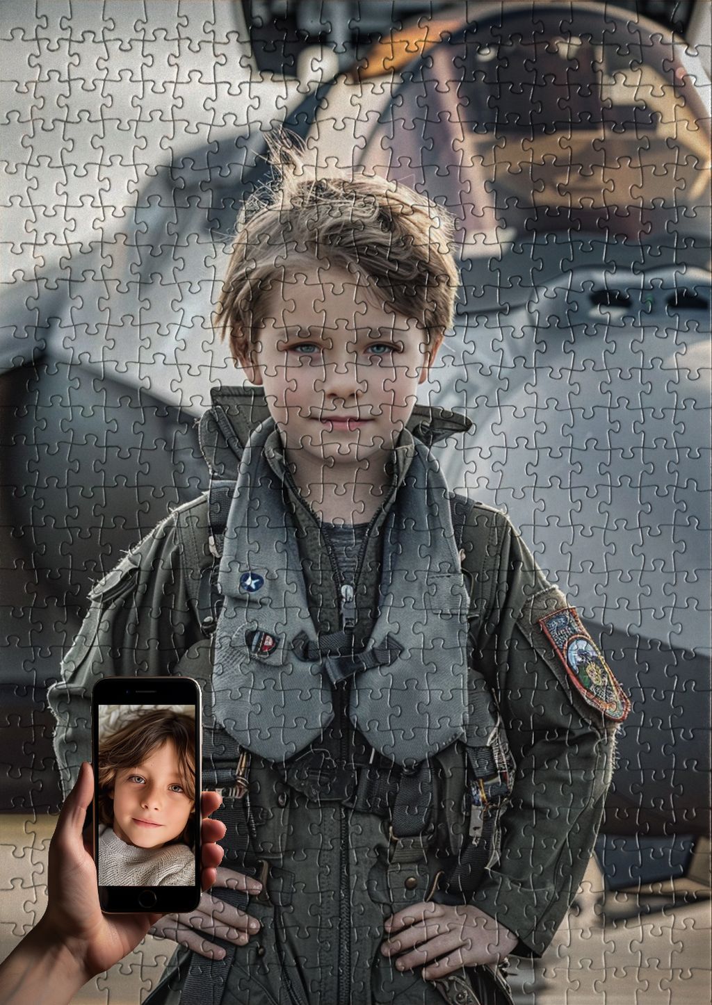 Your boy has all the plane toys but can't seem to have enough of them? He dreams of being a pilot? Maybe a Top Gun fighter pilot? Highway to the danger zone! Turn your child into the hero of their own story with our personalised puzzle! Thanks to the work of our digital artists, your child’s face...