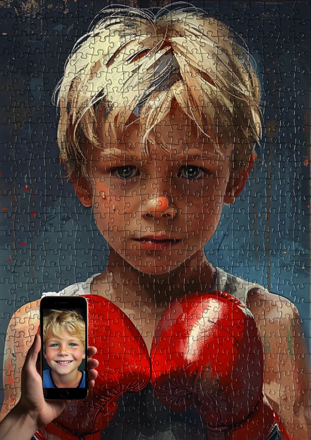 Does your child dream of becoming the next Rocky Balboa! Is he a fan of boxing? Turn your child into the hero of their own story with our personalised puzzle! Thanks to the work of our digital artists, your child’s face will be seamlessly integrated into the design of this boxer personalised puzz...